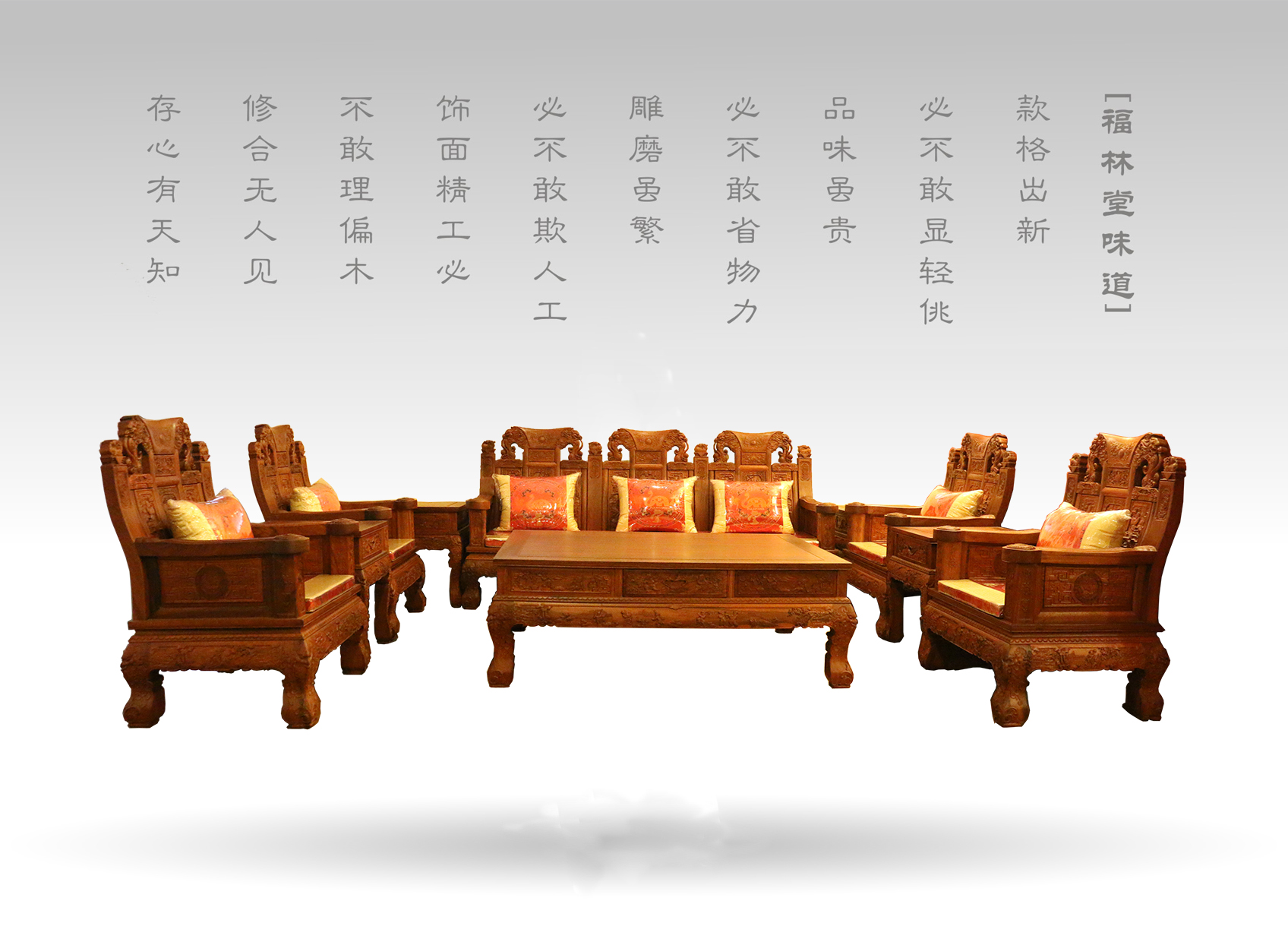 其次,我們可以根據前面對紅木家具的分類,分別進行選購,對仿古紅木沙發:應參考圈椅、官帽椅等形制相似的家具,即對其材質、雕工、拼料、榫卯結構等因素仔細辨別;而對新中式紅木沙發:則應當著重考量家具設計的優劣和工藝的運用。