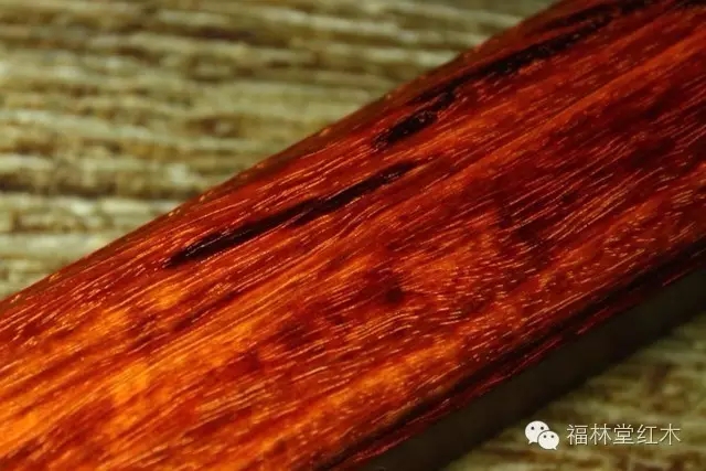 小葉紫檀還有一個(gè)特性,因?yàn)樾∪~紫檀的材質(zhì)十分致密堅(jiān)硬,久露空氣后,心材鮮紅色或橘紅色,條文變紫紅褐色,紋理纖細(xì)而且顯得在浮動,變化萬千,其樂無窮,并帶有有芳香。