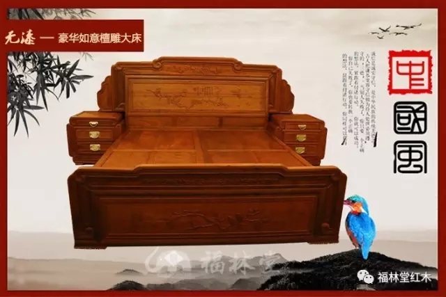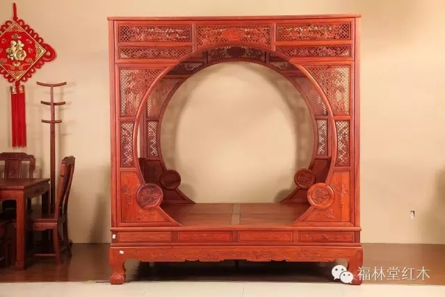 三、架子床:架子床,紅木家具傳統(tǒng)臥具。根據(jù)其設(shè)計(jì)的不同,可分為:四柱床和六柱床。它式樣頗多,結(jié)構(gòu)精巧,裝飾華美,多以歷史故事、民間傳說(shuō)、花馬山水等為題材,含和諧、平安、吉祥、多福、多子等寓意。其風(fēng)格古樸大方,堂皇富麗。我們福林堂紅木在挖掘古典架子床的基礎(chǔ)上,嚴(yán)格遵循中式家具榫卯要求的基礎(chǔ)上推出福典系列架子床,在型、藝、韻各方面堪稱(chēng)經(jīng)典。
